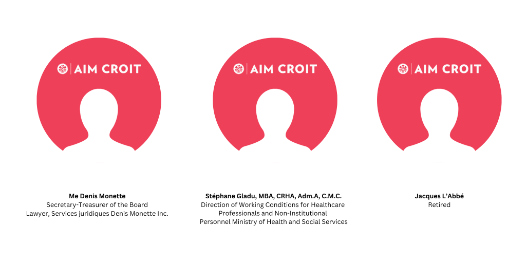 To become a member of AIM CROIT’s Board of Directors, you must submit your resume, and a letter of intent for the desired position. You must detail your qualifications as well as the ways in which your contribution will benefit the organization. Your application will be reviewed by the Board of Directors and you will be notified if you are selected for an interview. The status of your application will be determined by a vote from the Board of Directors and subsequently validated at the Annual General Meeting.